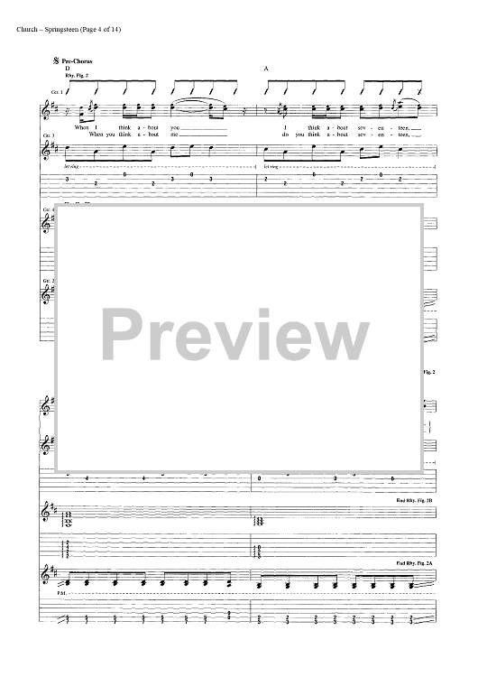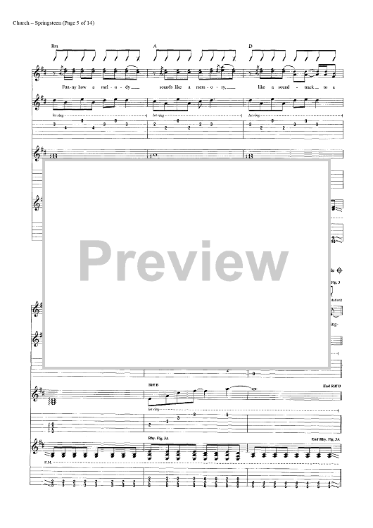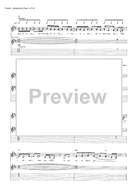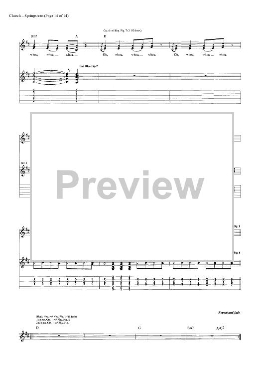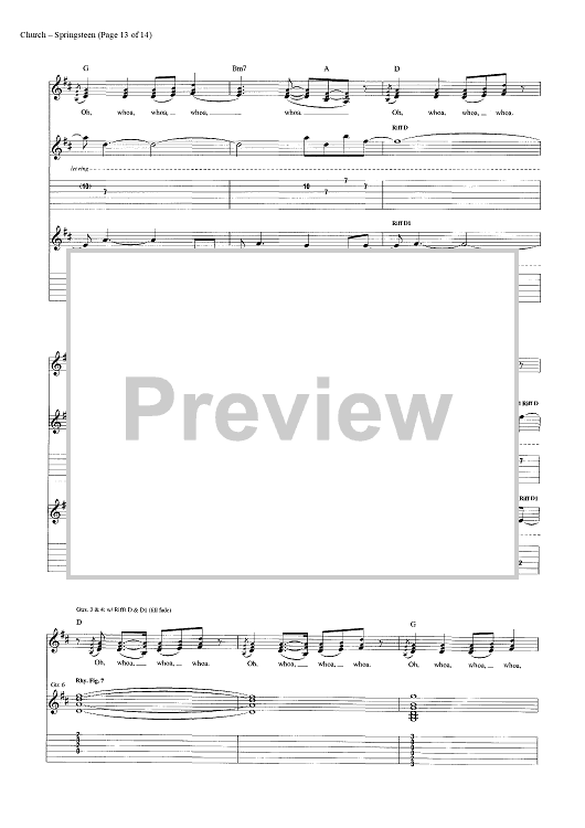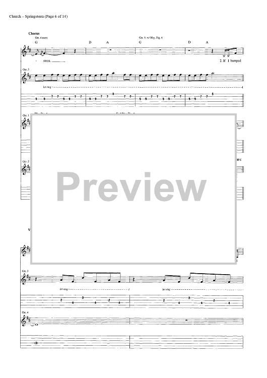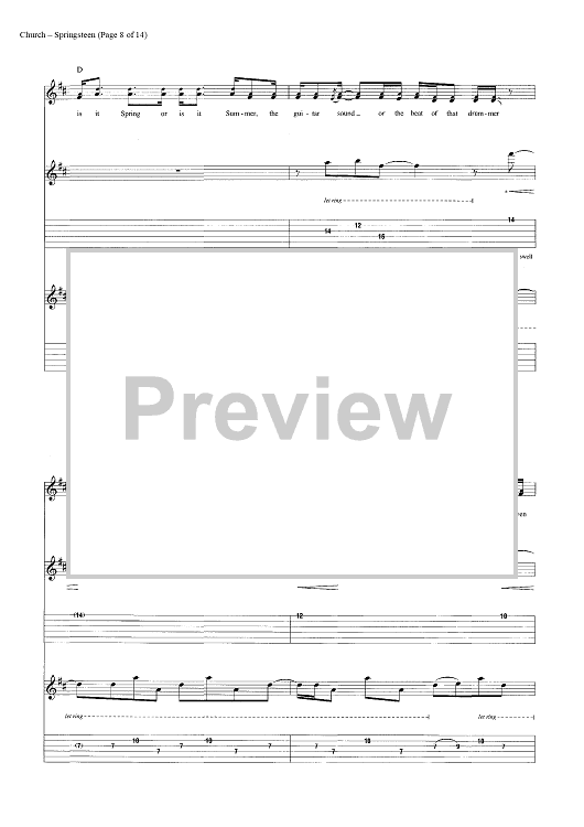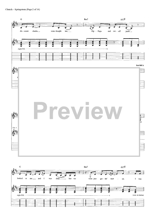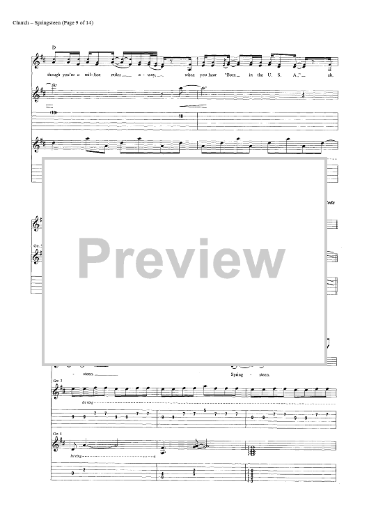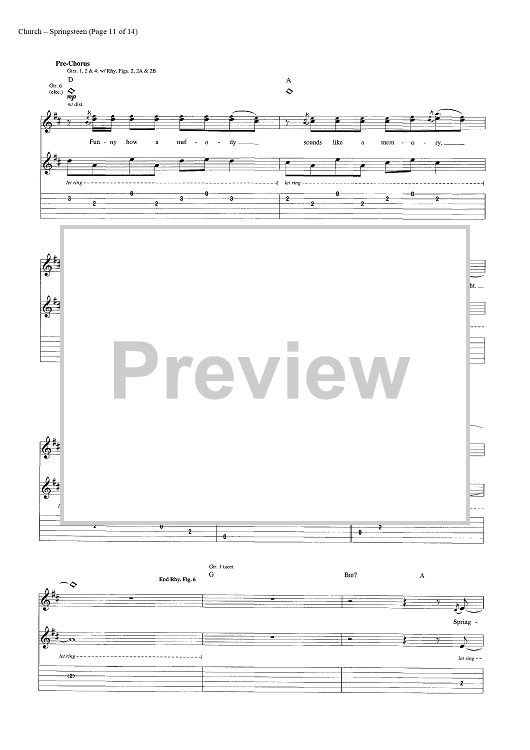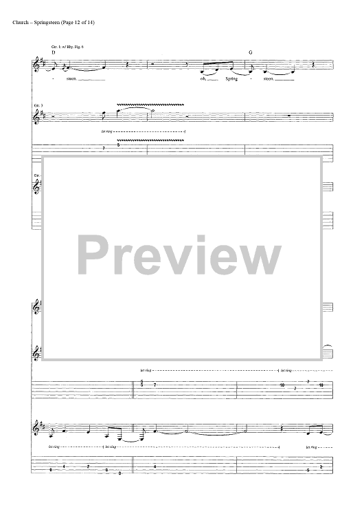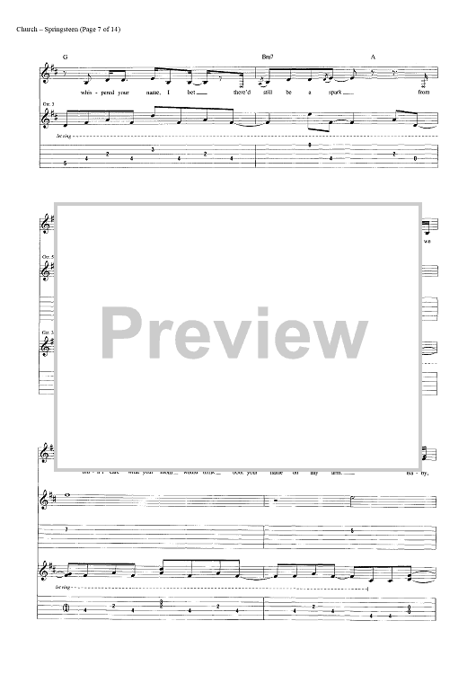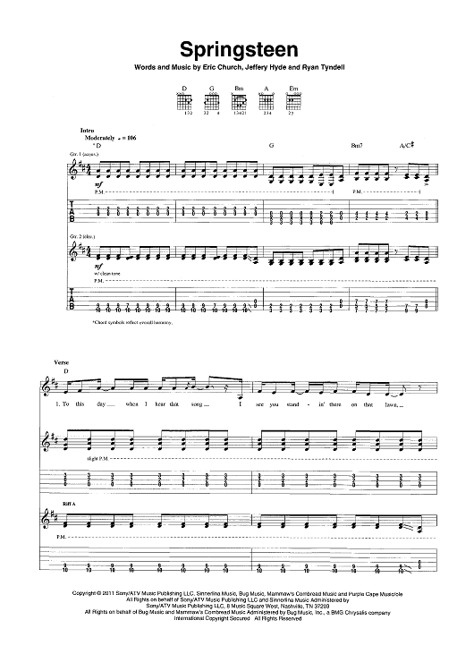 Digital Sheet Music for Springsteen by Eric Church, Jeffery Hyde, Ryan Tyndell scored for Guitar Tab/Vocal/Chords; id:446972