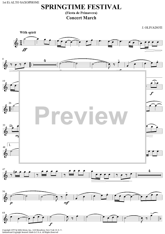 "Springtime Festival - Alto Saxophone 1" Sheet Music by J. Olivadoti