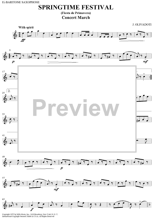 "Springtime Festival - Baritone Saxophone" Sheet Music by J. Olivadoti