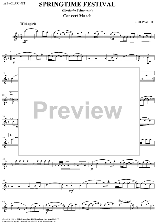"Springtime Festival - Clarinet 1" Sheet Music by J. Olivadoti