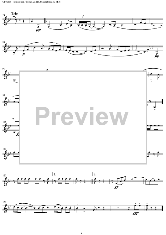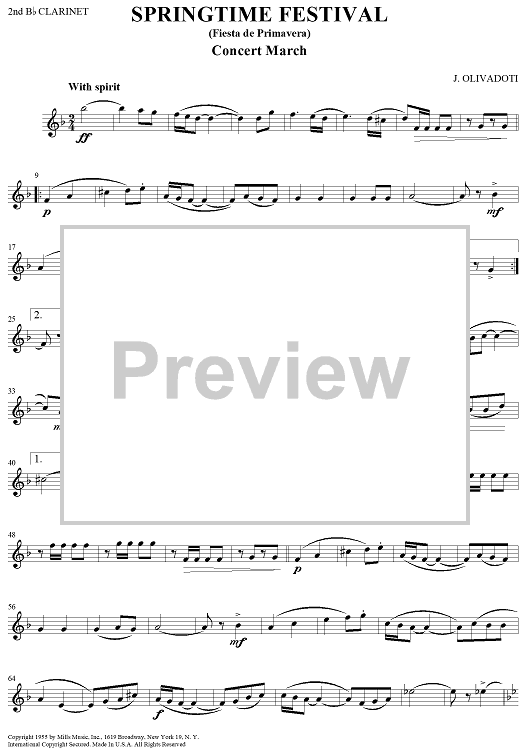 "Springtime Festival - Clarinet 2" Sheet Music by J. Olivadoti
