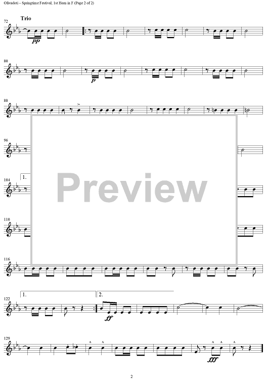 Digital Sheet Music for Springtime Festival - Horn in F 1 by J. Olivadoti scored for Concert Band; id:253445