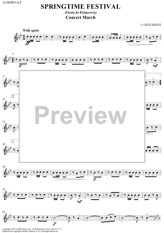 "Springtime Festival - Horn in F 1" Sheet Music by J. Olivadoti