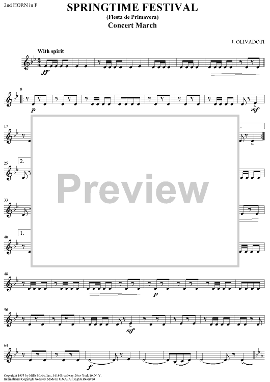 "Springtime Festival - Horn in F 2" Sheet Music by J. Olivadoti
