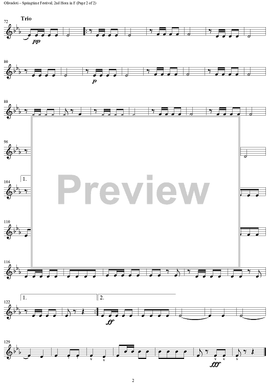 Digital Sheet Music for Springtime Festival - Horn in F 2 by J. Olivadoti scored for Concert Band; id:253446