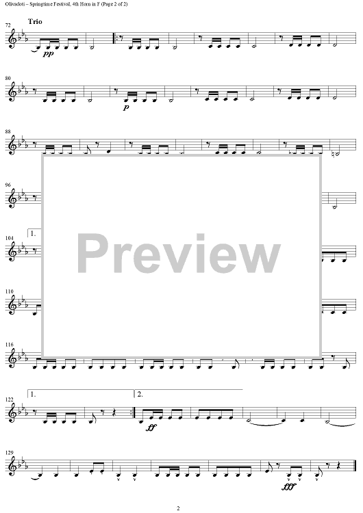 Digital Sheet Music for Springtime Festival - Horn in F 4 by J. Olivadoti scored for Concert Band; id:253450