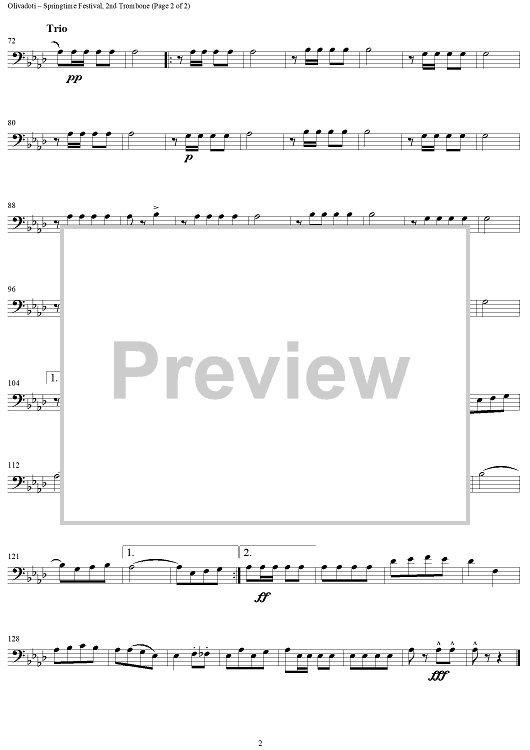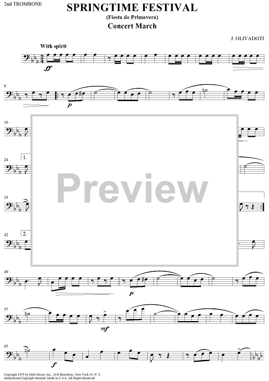 "Springtime Festival - Trombone 2" Sheet Music by J. Olivadoti
