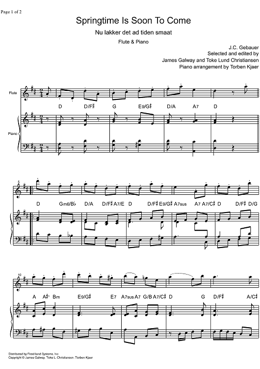 Digital Sheet Music for Springtime is Soon to Come - Score by , James Galway, Johan Christian Gebauer scored for Flute/Piano; id:324690