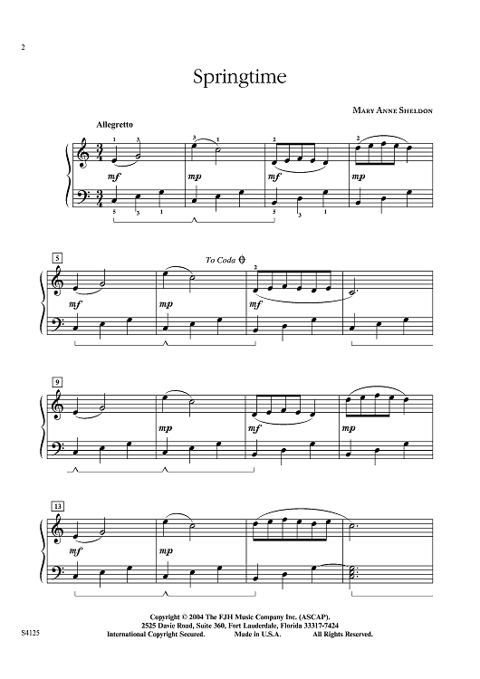 "Springtime" Sheet Music by Mary Anne Sheldon