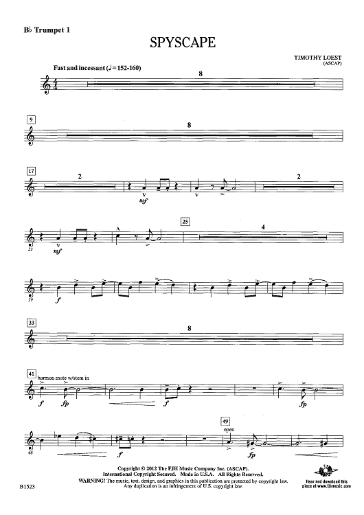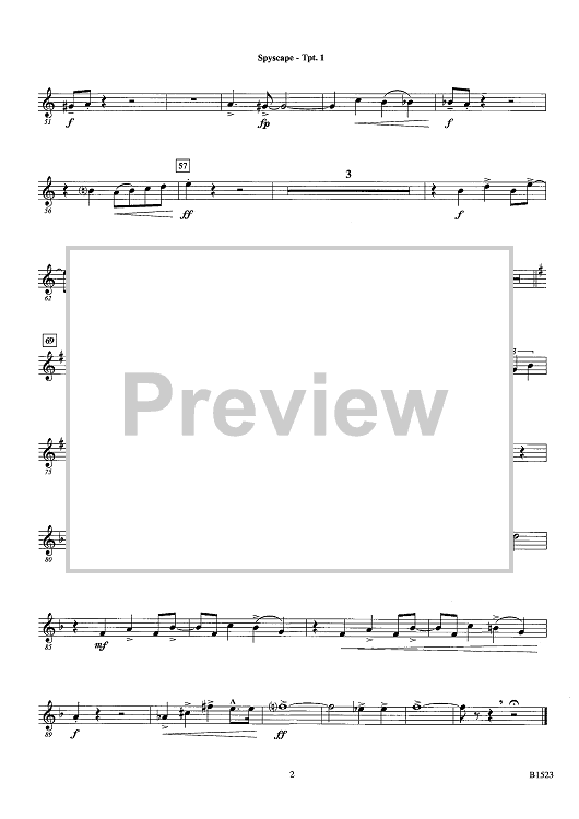 Digital Sheet Music for Spyscape - Bb Trumpet 1 by Timothy Loest scored for Concert Band; id:440005