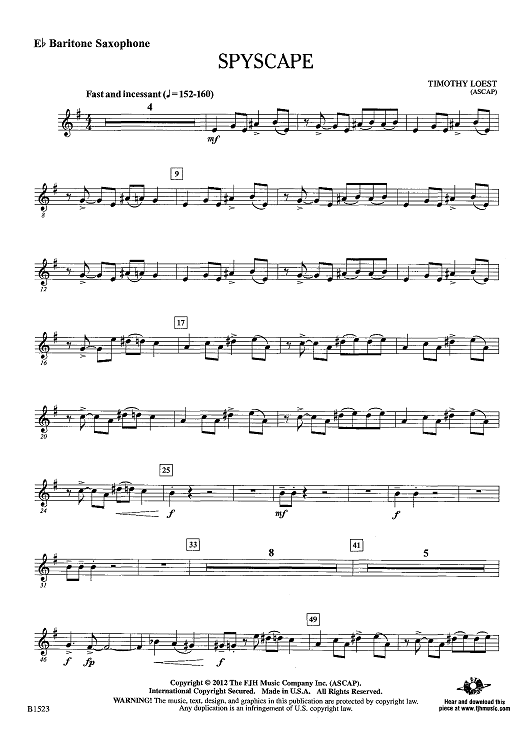 "Spyscape - Eb Baritone Sax" Sheet Music by Timothy Loest