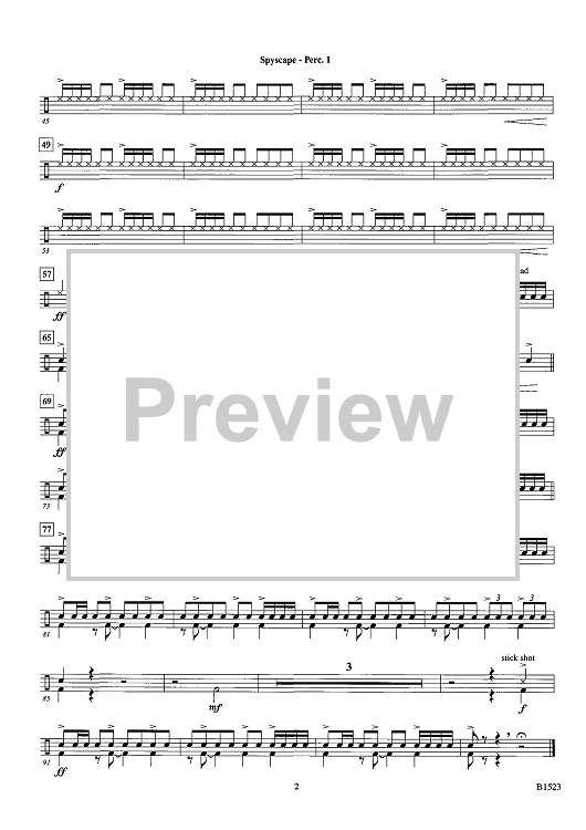 "Spyscape - Percussion 1" Sheet Music by Timothy Loest