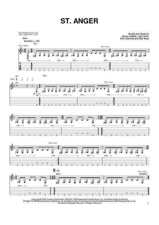 "St. Anger" Sheet Music by Metallica