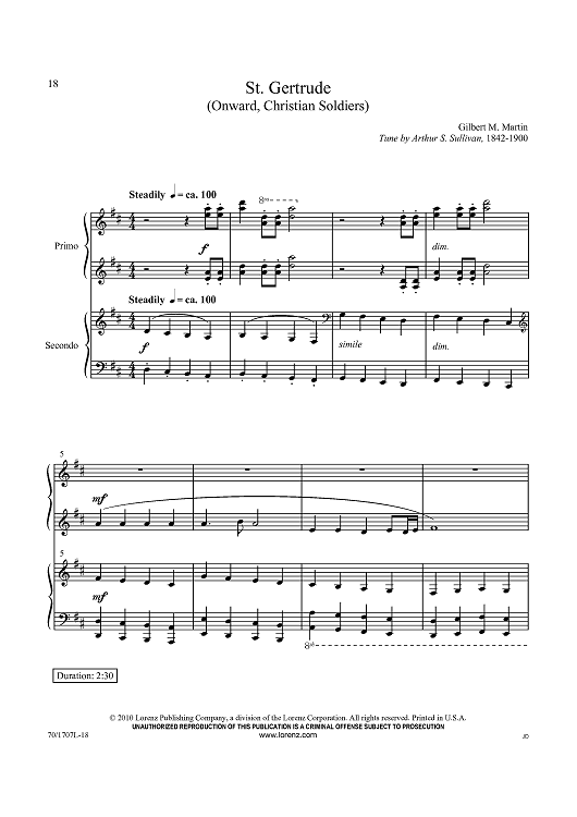 Digital Sheet Music for St. Gertrude (Onward, Christian Soldiers) by Arthur Sullivan, Gilbert M. Martin scored for Piano Duet; id:434168