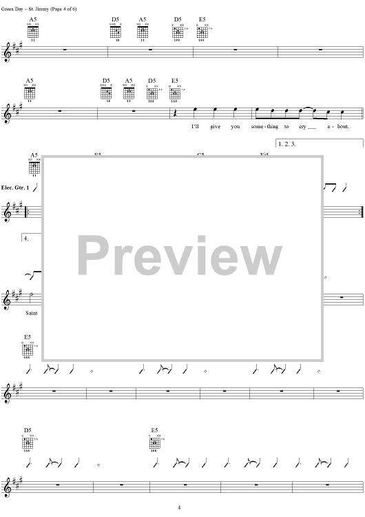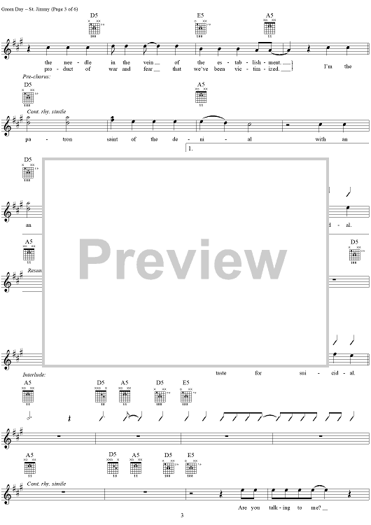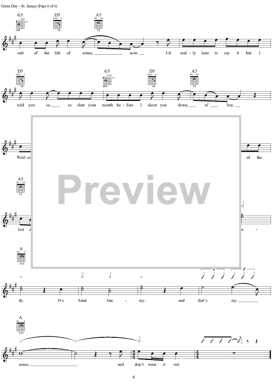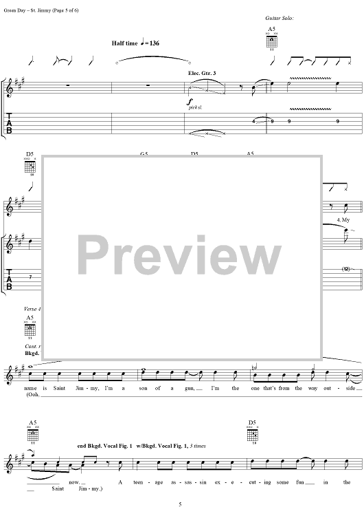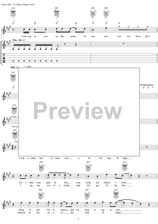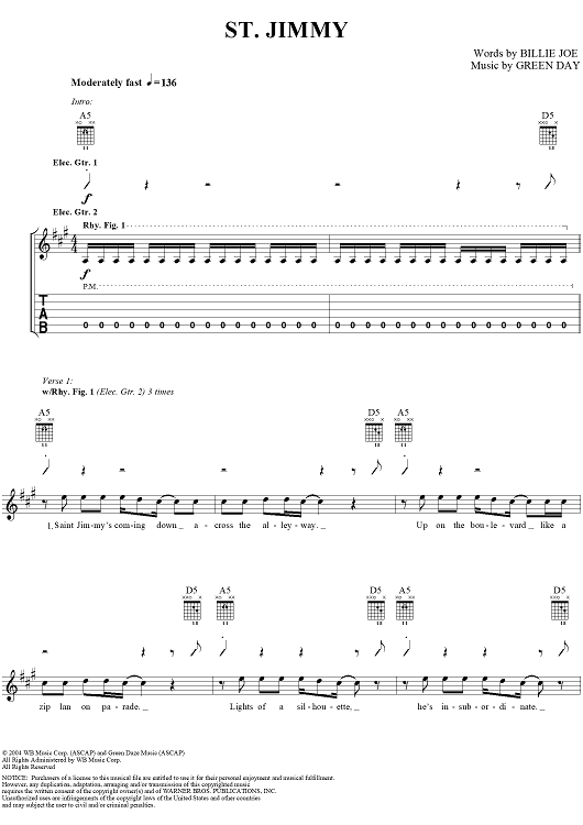 Digital Sheet Music for St. Jimmy by Green Day, Billie Joe scored for Guitar Tab/Vocal; id:308506
