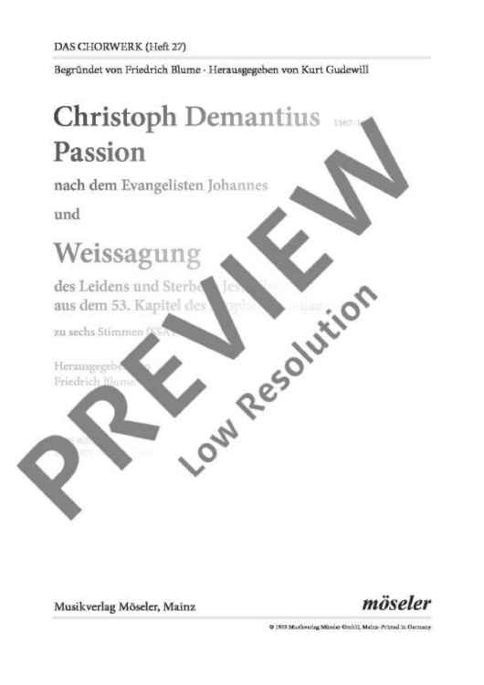 "St John Passion and the prophecy of Isaiah" Sheet Music by Christoph Demantius
