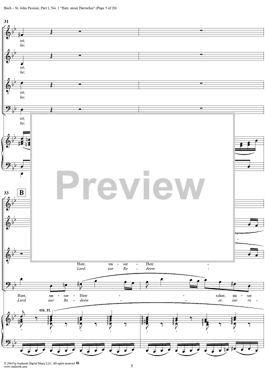 "St. John Passion: Part I, No. 1, "Herr, unser Herrscher"" Sheet Music by Johann Sebastian Bach