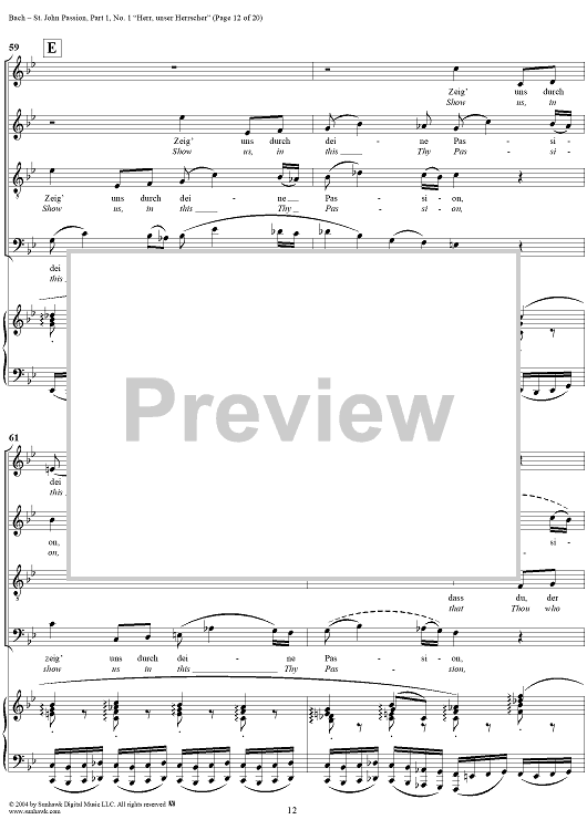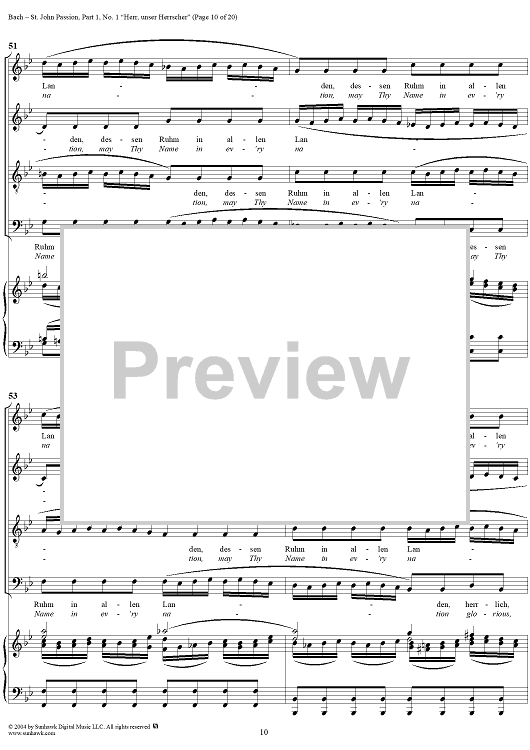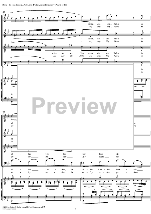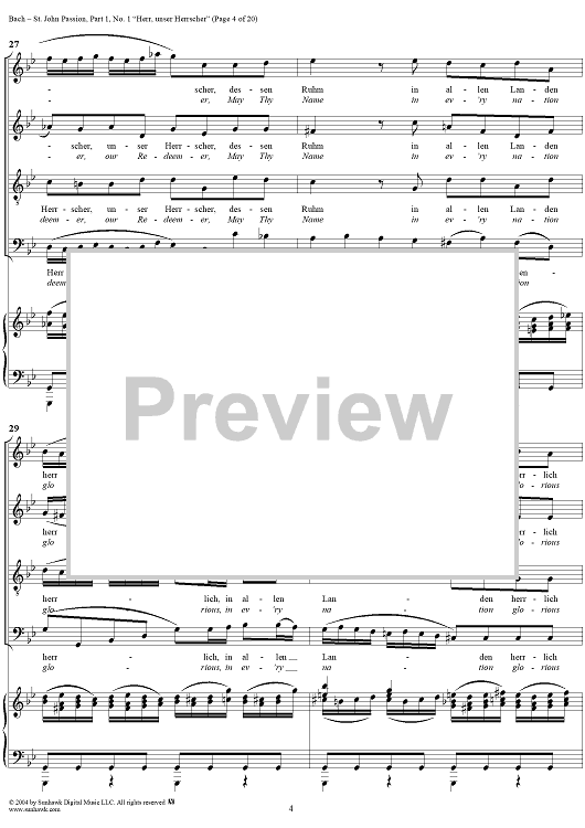 Digital Sheet Music for St. John Passion: Part I, No. 1, "Herr, unser Herrscher" by Johann Sebastian Bach scored for Four-part Mixed Chorus/Piano; id:305139