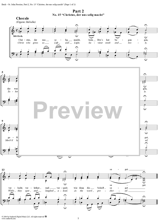 Digital Sheet Music for St. John Passion: Part II, No. 15, "Christus, der uns selig macht" by Johann Sebastian Bach scored for Voice/Piano; id:305152