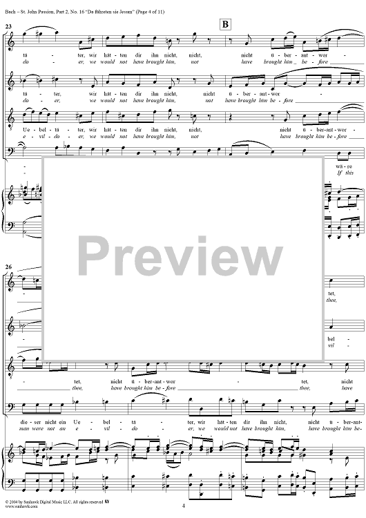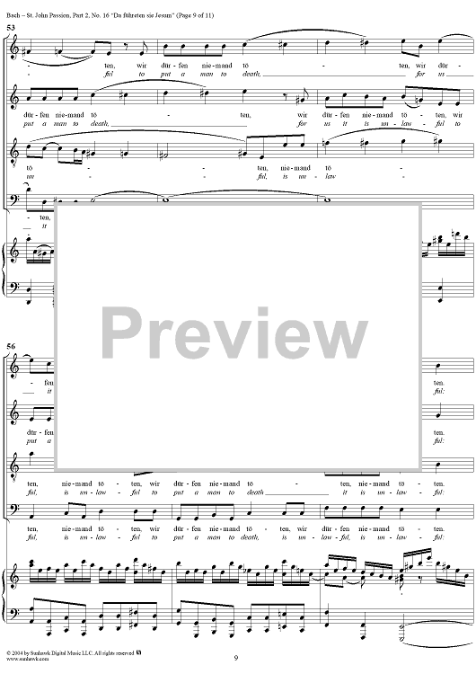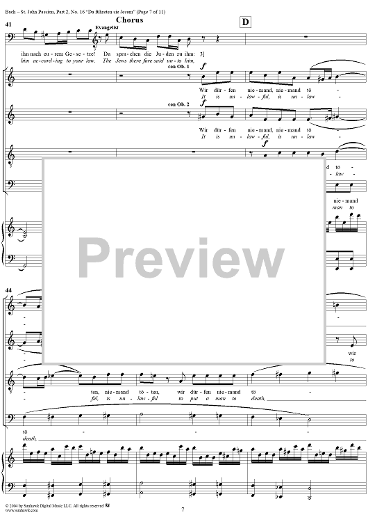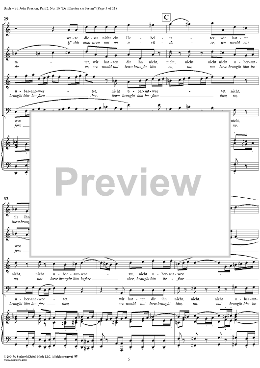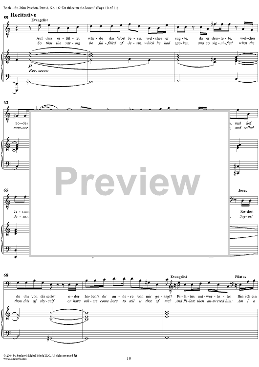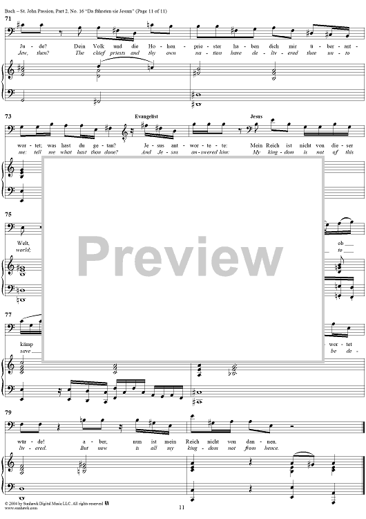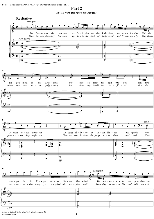 Digital Sheet Music for St. John Passion: Part II, No. 16, "Da führeten sie Jesum" by Johann Sebastian Bach scored for Voice/Piano; id:305153
