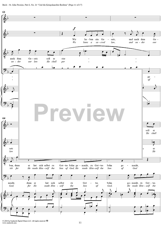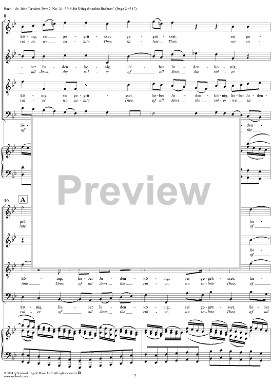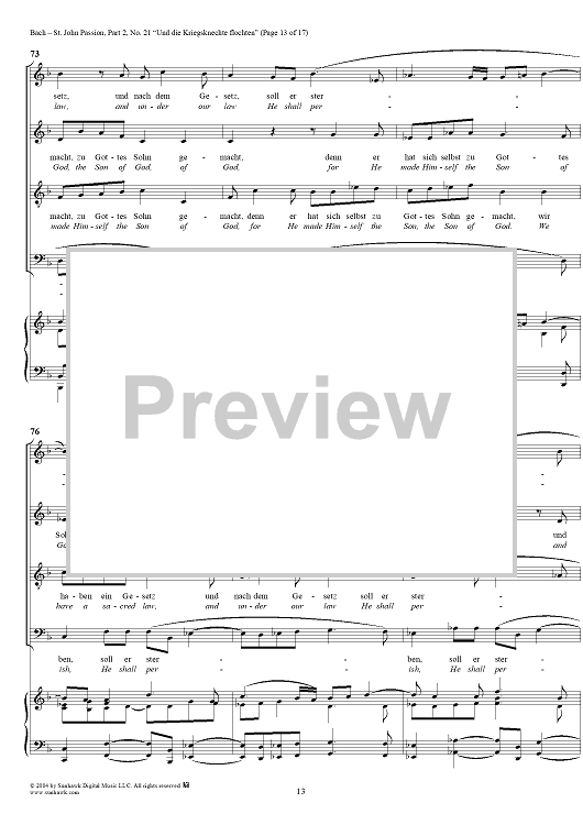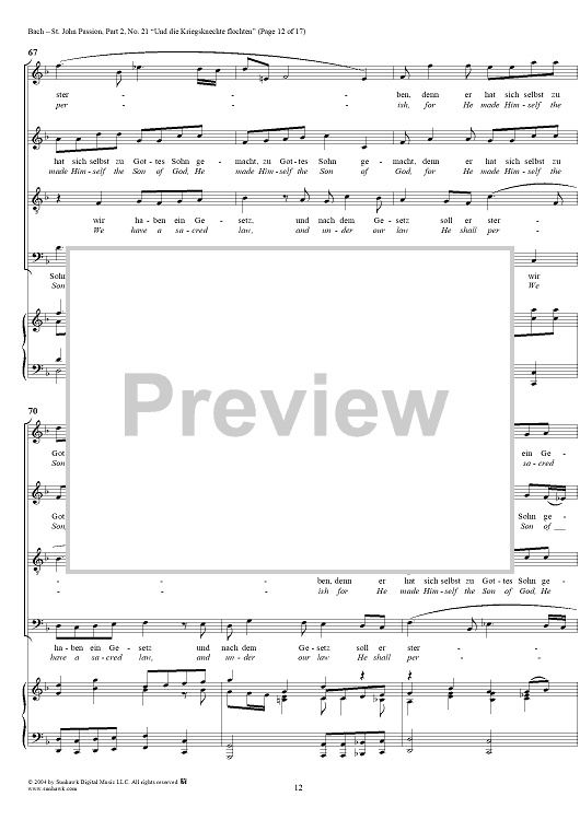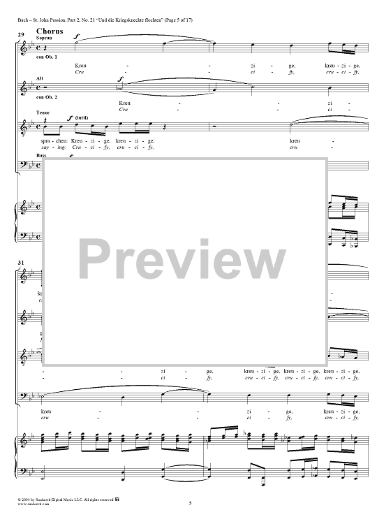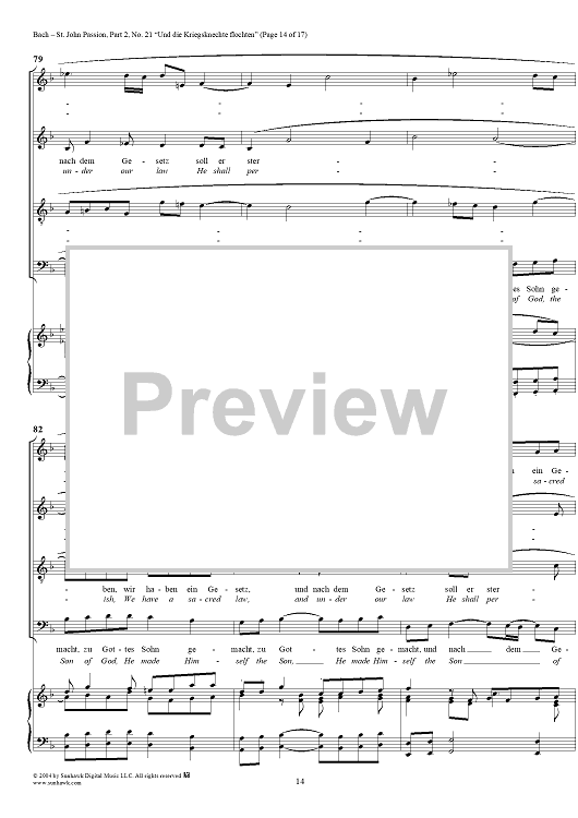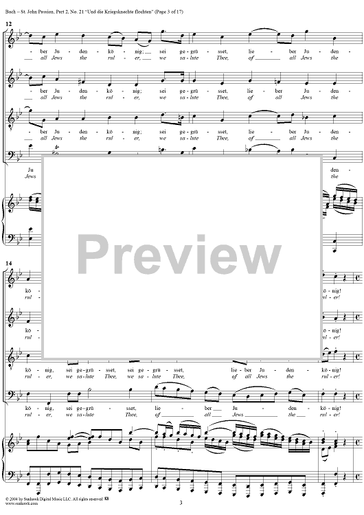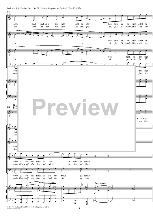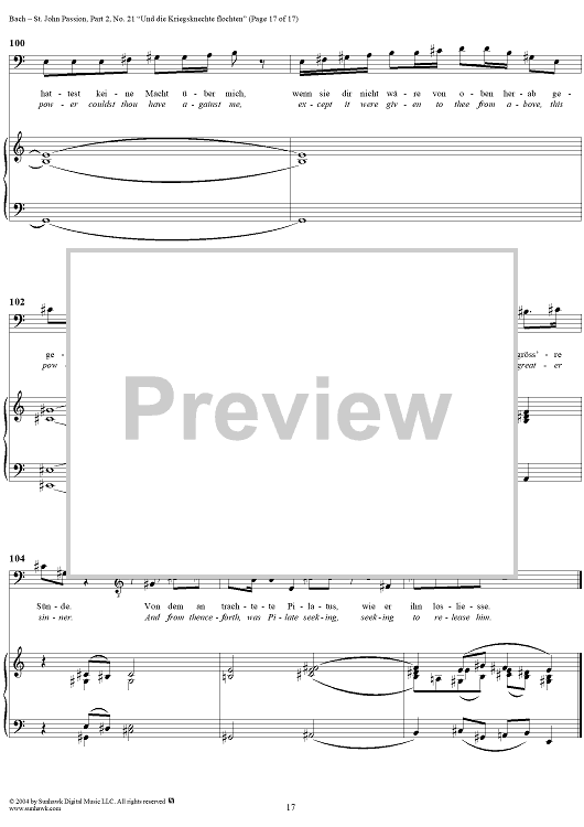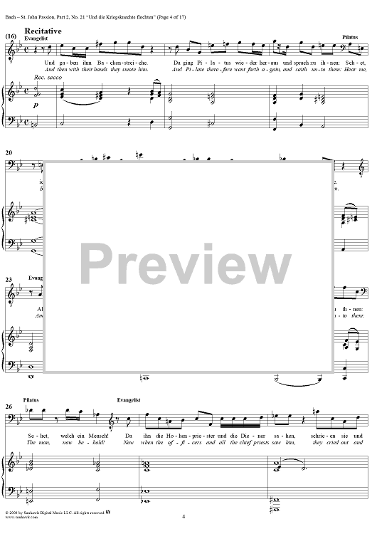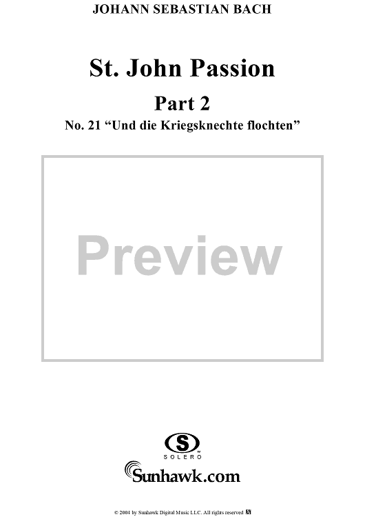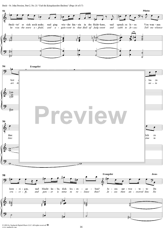 Digital Sheet Music for St. John Passion: Part II, No. 21, "Und die Kriegsknechte flochten" by Johann Sebastian Bach scored for Voice/Piano; id:305158