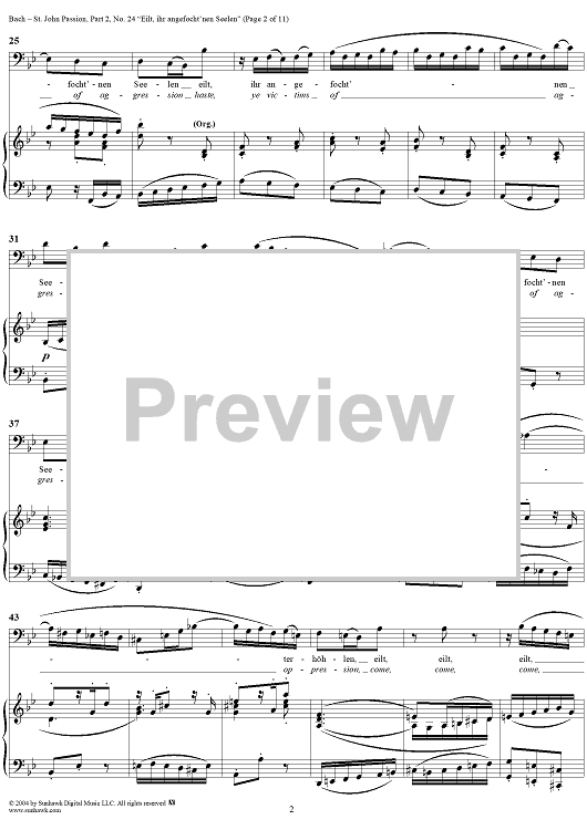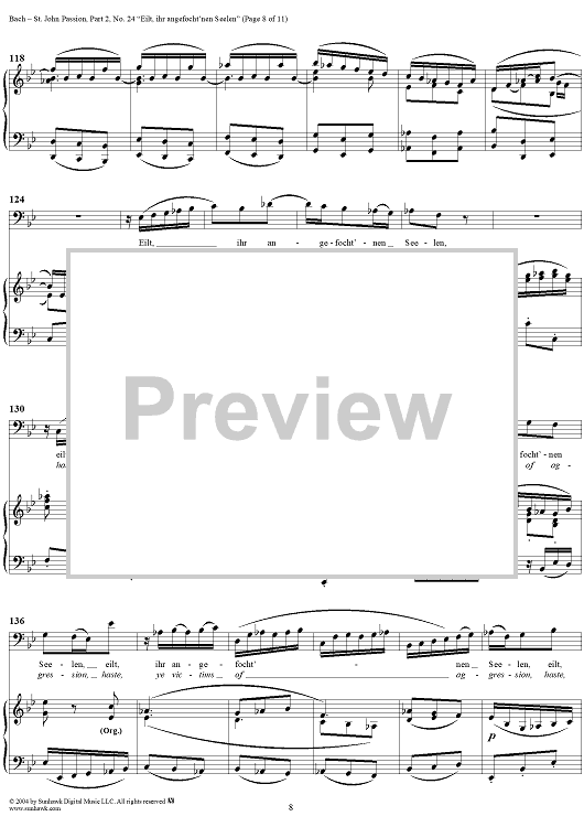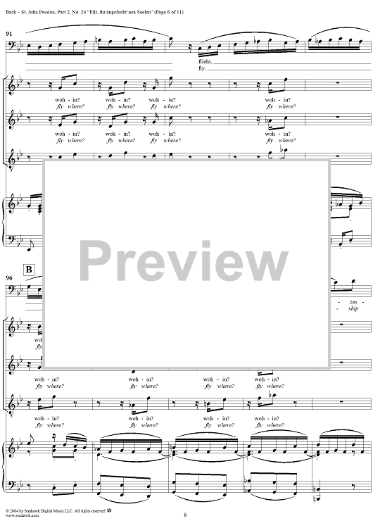 Digital Sheet Music for St. John Passion: Part II, No. 24, "Eilt, ihr angefocht'nen Seelen" by Johann Sebastian Bach scored for Voice/Piano; id:305161