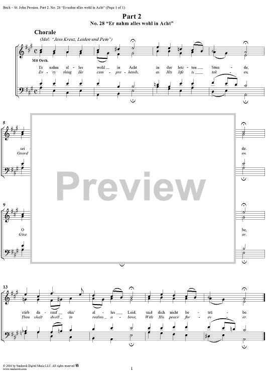 Digital Sheet Music for St. John Passion: Part II, No. 28, "Er nahm Alles wohl in acht" by Johann Sebastian Bach scored for Voice/Piano; id:305167