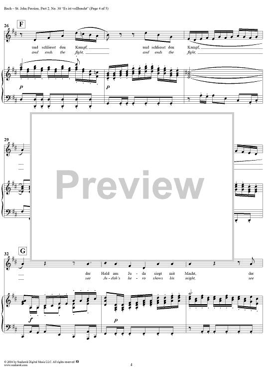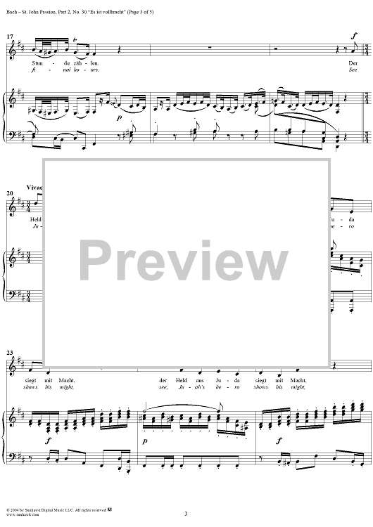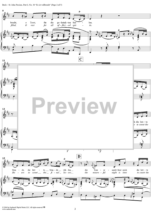 Digital Sheet Music for St. John Passion: Part II, No. 30, "Es ist vollbracht" by Johann Sebastian Bach scored for Voice/Piano; id:305169