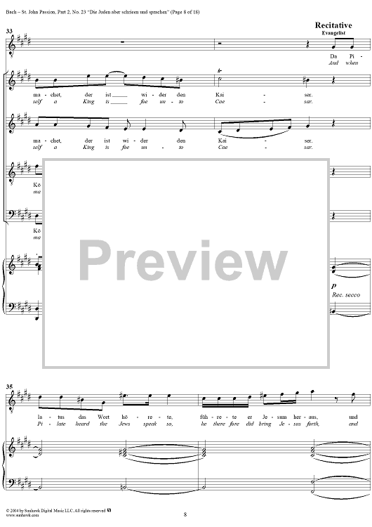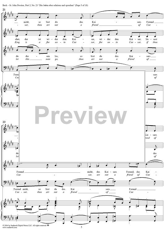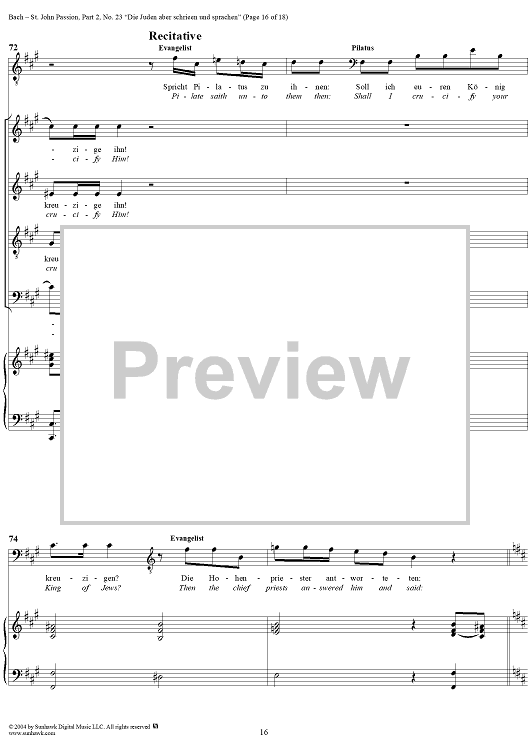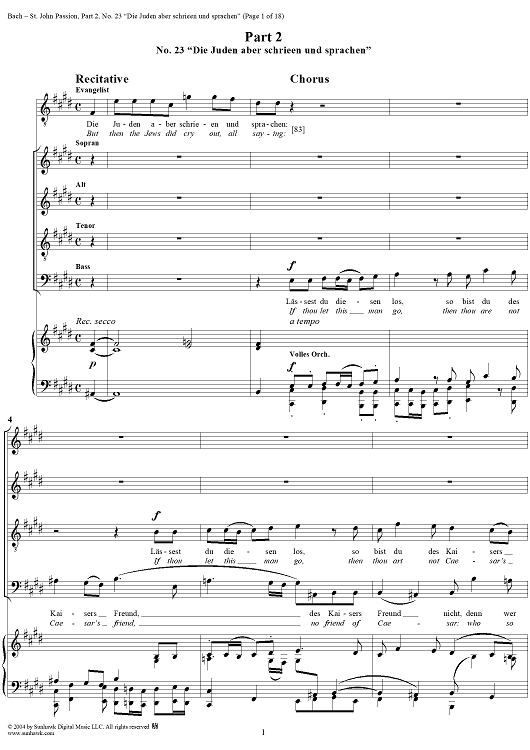 Digital Sheet Music for St. John Passion: Part II, Nos. 23a, 23b, 23c, 23d, 23e, 23f, 23g, "Die Juden aber schrien und sprachen" by Johann Sebastian Bach scored for Voice/Piano; id:305160
