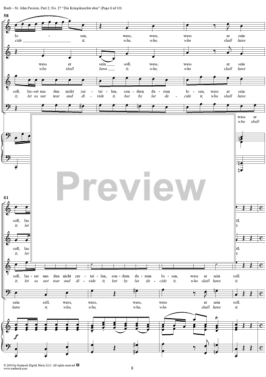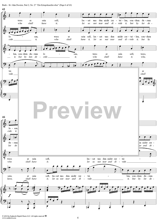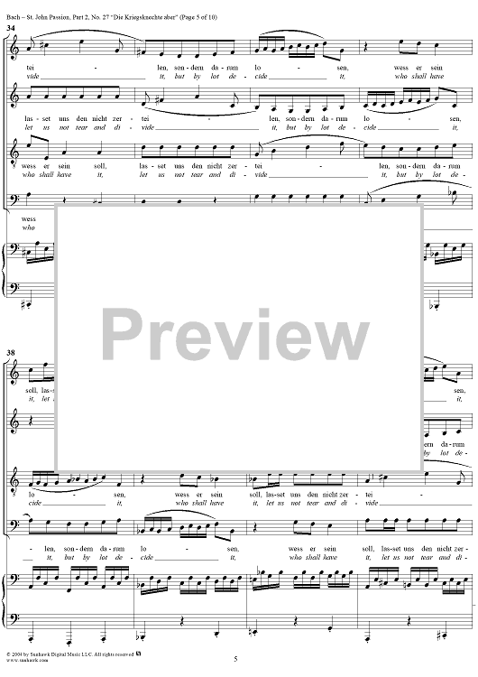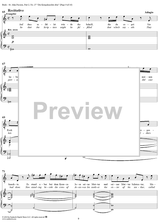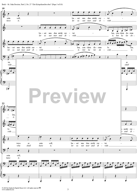 Digital Sheet Music for St. John Passion: Part II, Nos. 27a, 27b, 27c, "Die Kriegsknechte aber", "Lasset uns", "Auf dass erfüllet" by Johann Sebastian Bach scored for Voice/Piano; id:305166