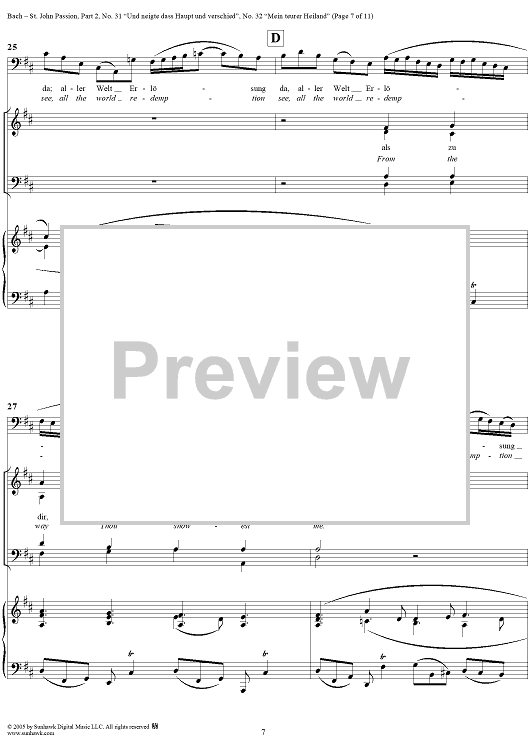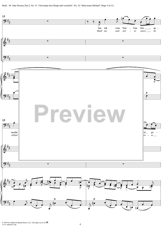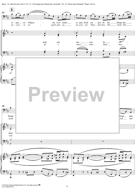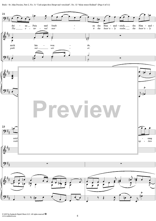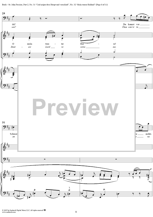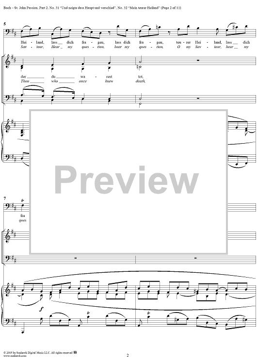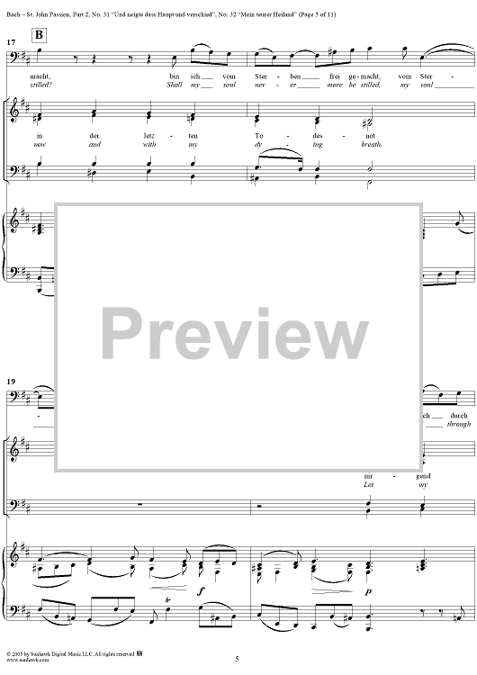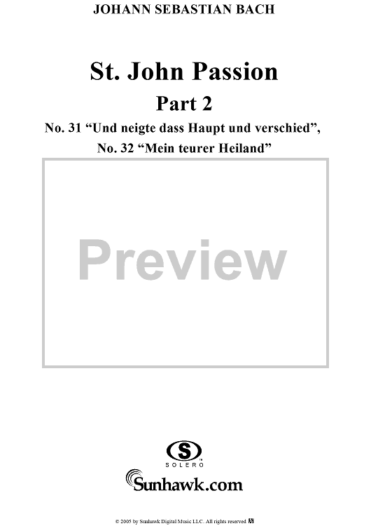 Digital Sheet Music for St. John Passion: Part II, Nos. 31 and 32, "Und neigte das Haupt und verschied", "Mein teurer Heiland" by Johann Sebastian Bach scored for Voice/Piano; id:305170