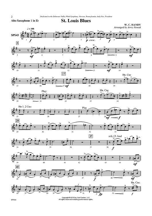 "St. Louis Blues - Alto Sax 1" Sheet Music by W. C. Handy