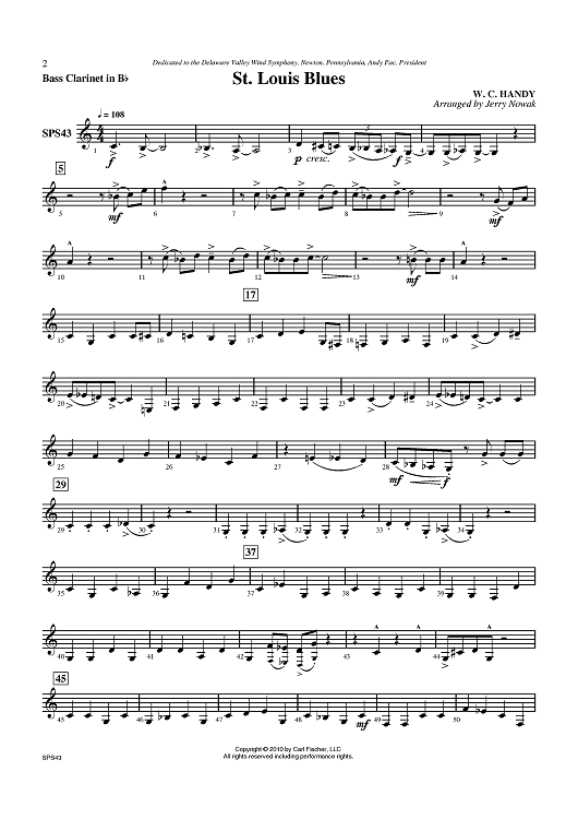 "St. Louis Blues - Bass Clarinet in B-flat" Sheet Music by W. C. Handy