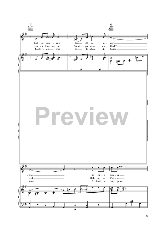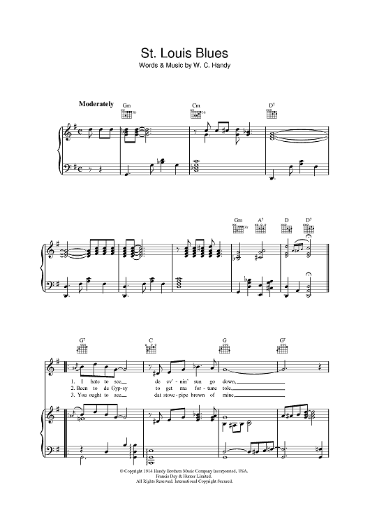 Digital Sheet Music for St. Louis Blues by W. C. Handy scored for Piano/Vocal/Chords; id:392883