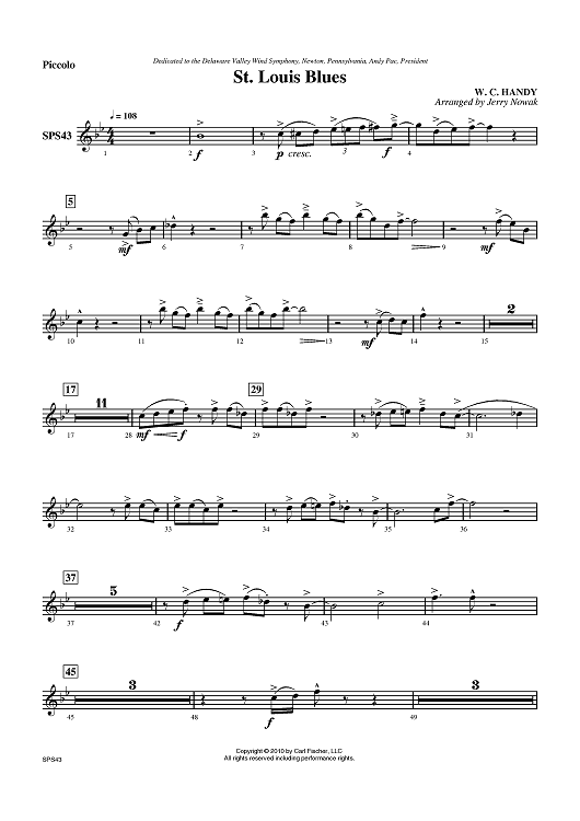 "St. Louis Blues - Piccolo" Sheet Music by W. C. Handy