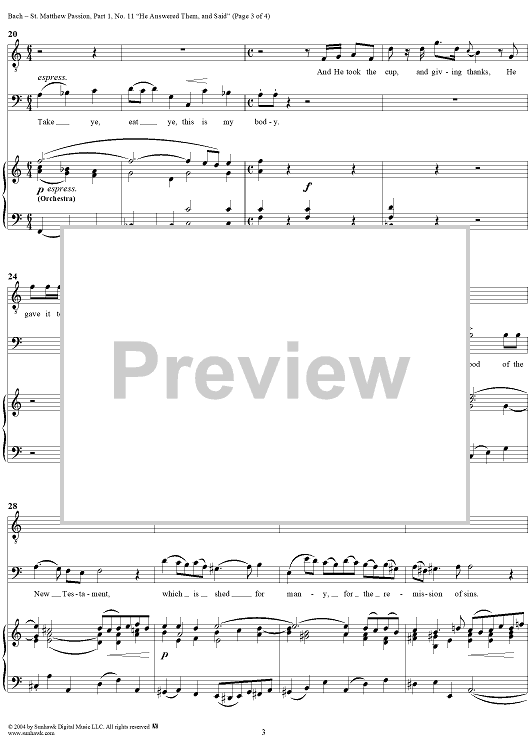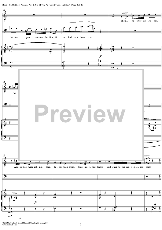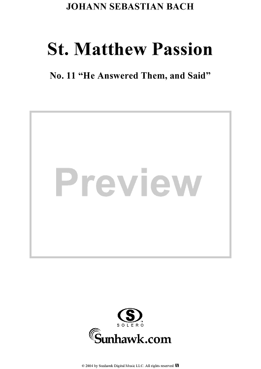 Digital Sheet Music for St. Matthew Passion: Part I, No. 11, "He Answered Them, and Said" by Johann Sebastian Bach scored for Voice/Piano; id:304918