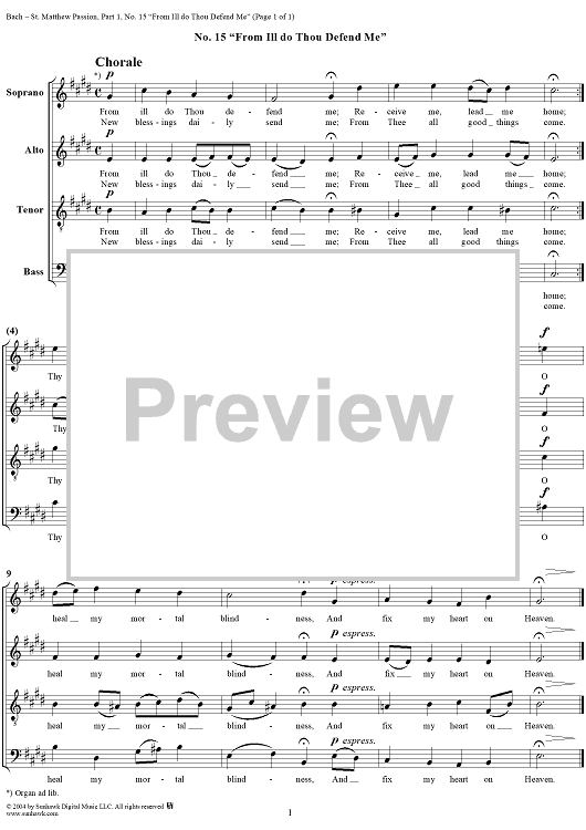 Digital Sheet Music for St. Matthew Passion: Part I, No. 15, "From Ill do Thou Defend Me" by Johann Sebastian Bach scored for Four-part Mixed Chorus; id:304923