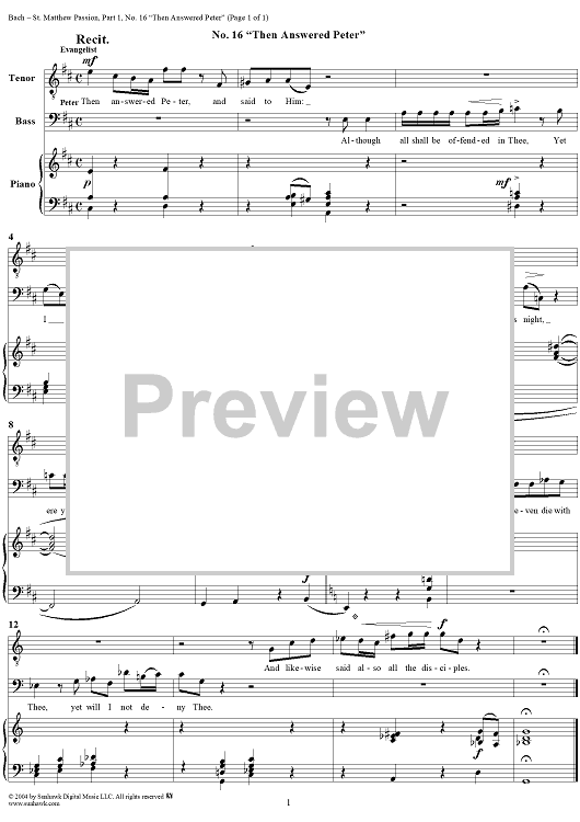 Digital Sheet Music for St. Matthew Passion: Part I, No. 16, "Then Answered Peter" by Johann Sebastian Bach scored for Voice/Piano; id:304924