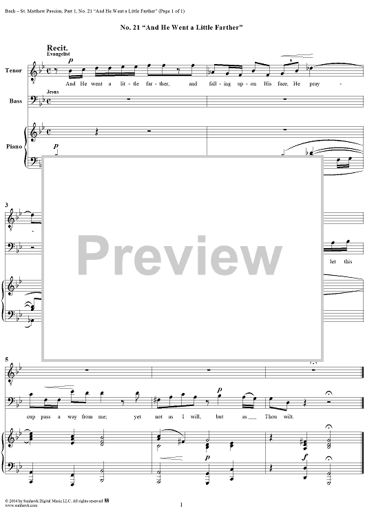 Digital Sheet Music for St. Matthew Passion: Part I, No. 21, "And He Went a Little Farther" by Johann Sebastian Bach scored for Voice/Piano; id:304929