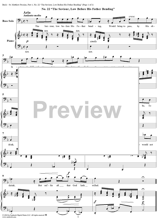 Digital Sheet Music for St. Matthew Passion: Part I, No. 22, "The Saviour, Low Before His Father Bending" by Johann Sebastian Bach scored for Voice/Piano; id:304930