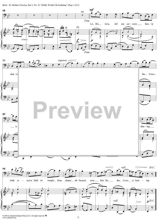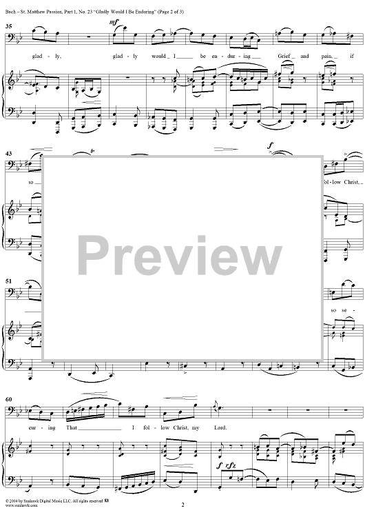 Digital Sheet Music for St. Matthew Passion: Part I, No. 23, "Gladly Would I Be Enduring" by Johann Sebastian Bach scored for Voice/Piano; id:304931
