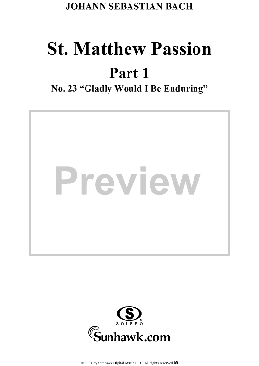 "St. Matthew Passion: Part I, No. 23, "Gladly Would I Be Enduring"" Sheet Music by Johann Sebastian Bach