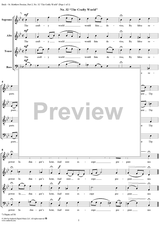 Digital Sheet Music for St. Matthew Passion: Part II, No. 32, "The Crafty World" by Johann Sebastian Bach scored for Four-part Mixed Chorus; id:304949