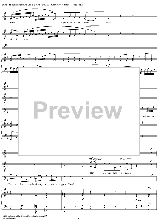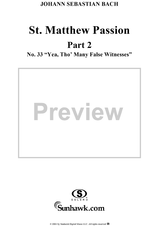 "St. Matthew Passion: Part II, No. 33, "Yea, Tho' Many False Witnesses"" Sheet Music by Johann Sebastian Bach