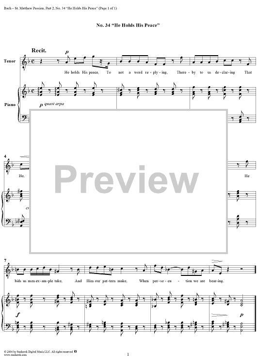 Digital Sheet Music for St. Matthew Passion: Part II, No. 34, "He Holds His Peace" by Johann Sebastian Bach scored for Voice/Piano; id:304951
