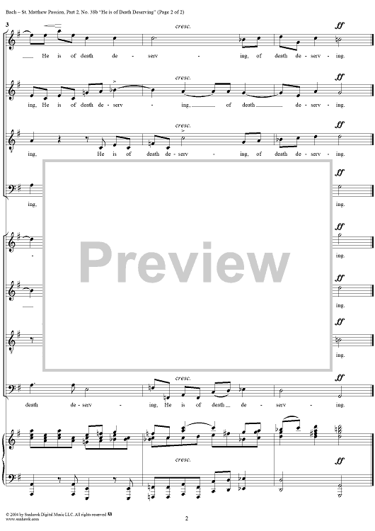 Digital Sheet Music for St. Matthew Passion: Part II, No. 36b, "He Is of Death Deserving" by Johann Sebastian Bach scored for Four-part Mixed Chorus; id:304954