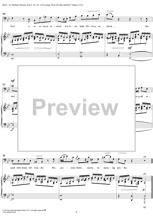 Digital Sheet Music for St. Matthew Passion: Part II, No. 64, "At Evening, Hour of Calm and Rest" by Johann Sebastian Bach scored for Voice/Piano; id:305081