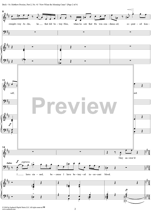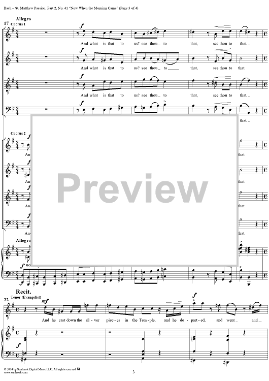 "St. Matthew Passion: Part II, Nos. 41a, 41b and 41c, "Now When the Morning Came"" Sheet Music by Johann Sebastian Bach