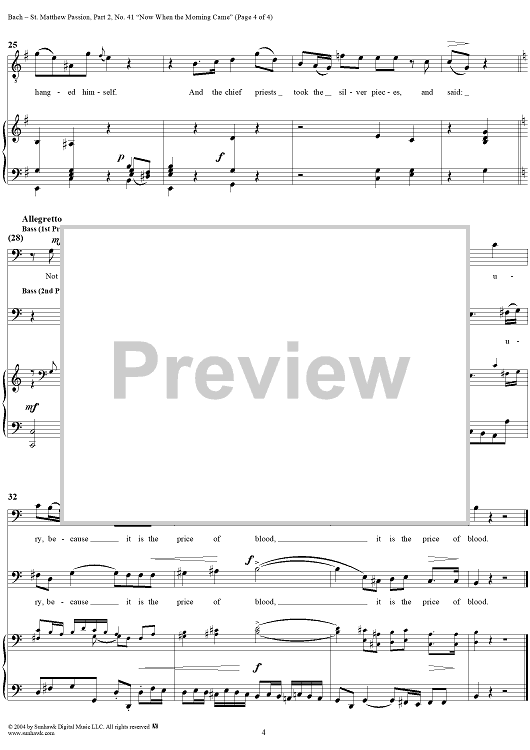 Digital Sheet Music for St. Matthew Passion: Part II, Nos. 41a, 41b and 41c, "Now When the Morning Came" by Johann Sebastian Bach scored for Voice/Piano; id:304984