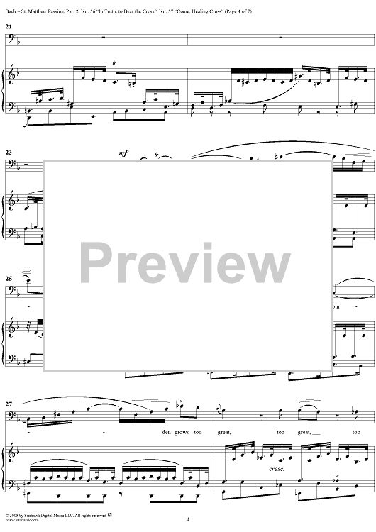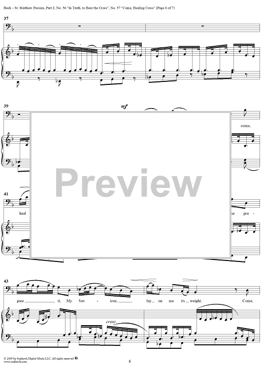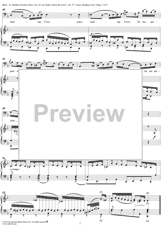 Digital Sheet Music for St. Matthew Passion: Part II, Nos. 56-57, "In Truth, to Bear the Cross", "Come, Healing Cross" by Johann Sebastian Bach scored for Voice/Piano; id:305074